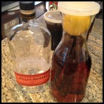Another Matthew Biancaniello suggestion… as with any good mentor, Matt doesn’t always tell you exactly what to do, how would one learn without the occasional experimentation and failure. I was given an idea, left to experiment on my own. I questioned weather to blog about my failed attempt or not, but that would be injustice to the process and a claim that I know all and make no mistakes, which I am nor do not. We create, sometimes we fail, to go on to create again. I went a little heavy handed with this idea, using 3 cigars, and letting it sit overnight. The result upon first sip, did have some merits, there was a nice smokiness that was added to the Bourbon, but it was very over bearing. There is some promise to this infusion, however the next time I think it will be tried with only 1 cigar and left to sit for maybe only an hour or two. Until then I think I’ll stick to rinsing a glass with a nice peaty scotch if I want to get that smoky flavor when making a drink with Bourbon.