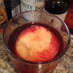 I had just finished working on Snow White and The Huntsmen, revision after revision of this one shot where the bitten apple melts away in her hand, and lets just say I was inspired, or couldn’t get apples out of my head. I suppose its also sufficient to say as a born and raised Bostonian, we never really live down that famous line from Good Will Hunting. I had seen this idea before at a Bourbon Sour off held at Uva Wine Bar in Vancouver, with a sour made by Joel Virginillo of The Refinery (an amazing drinking establishment if you ever find yourself up north), where he pre-made caramel apples, froze them and used them as an ice cube in the cocktail. Pic of that inspiration here. I shared this idea with Matt over at Library as well and if you were lucky enough to stop by there on the night of the Peach Beer dinner, Matt used frozen peaches as ice element for a peach beer cocktail. (Kicking myself for not taking a picture of that! Thankfully the internet is an amazing place)
