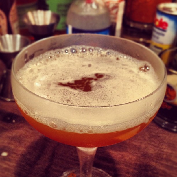 Both a friend and myself have been inspired by Matt’s infusions at the Library bar. This night my friend brought over an infusion he tried, trying to mimic Matt’s Coconut Vanilla Chai tea infused Gin. The natural thing to do was to make one of my favorite drinks I’ve had at the Library Bar, even if its one of the more simple ones, its just delicious. I gave a little twist of my own adding in some Velvet Falernum, a flavor I love that I thought would pair well with the Chai.