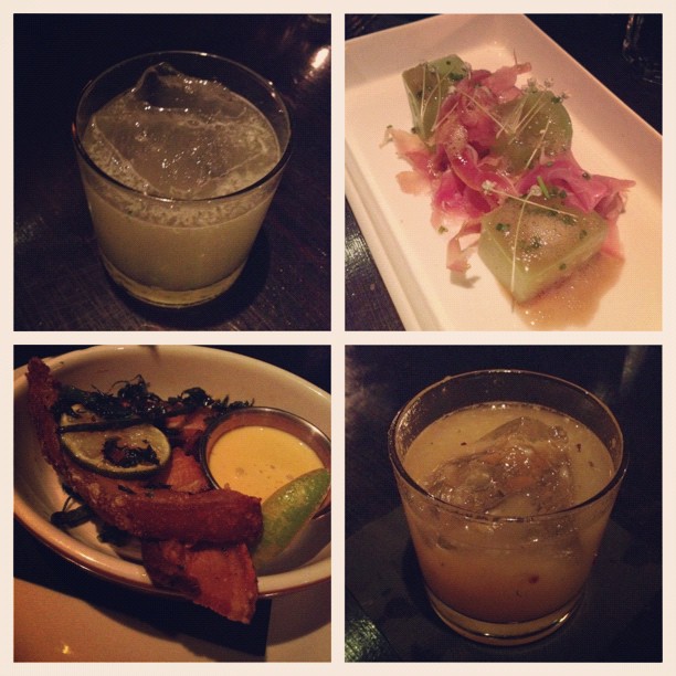 A few bites to eat from Public in the Hotel, which you can order from at the bar. The Chicharones are TOO DIE for! Drinks: Wild Arugula Gimlet and a Muddled Curry Leaf with Gin cocktail