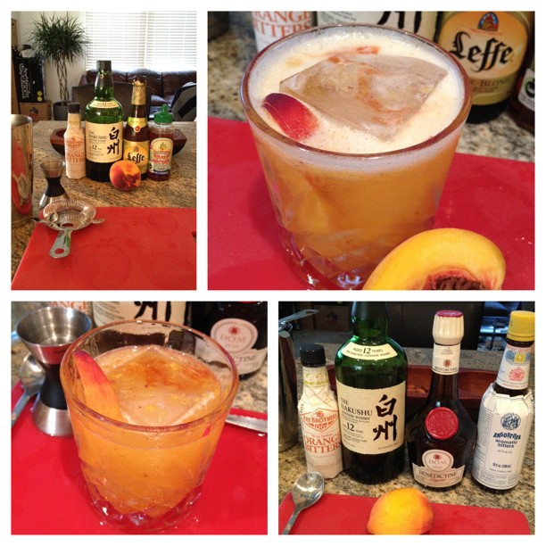 I thought the peach would pair will with Leffe since it was so successful in my other beer cocktail, and for some crazy reason since since the Persimmon Bitter’s used by Cari Hah paired so well with Japanese Whisky, I went for it… crazy idea it was. Looked great, taste, meh.