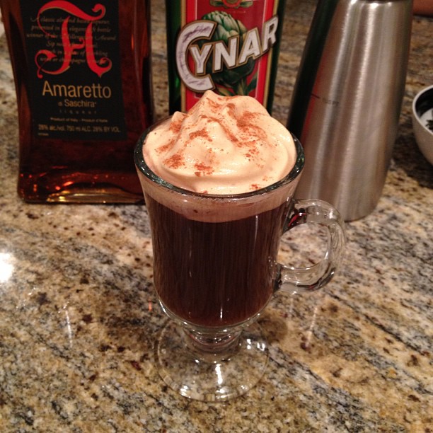 One of the main reasons I wanted to make the coffee cynar foam was for the idea of this cocktail. Every young Italian American boy has memories of their Nonna, in this case it was my great grandmother, who came to the US at the age of 18.  She used to always put a dash of amaretto into hot chocolate after playing out in the snow for that little bit extra to warm you up and that is where I came up with the idea for this drink. Winter was coming and it was time for a hot cocktail.